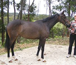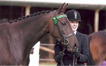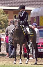 Chalani Fortune earnt the nick name "Bangles" due to her four white socks. Bangles was sold to Adele Perkins who has lightly shown her at ASH competitions.