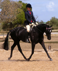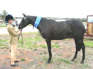 Denim is proving a quality hack with wins at Ag and ASH shows with owner Eva Cummings. A few 2008 results: Burra Ag Show - Lightweight Hack and Reserve Champion Hack. Owner Eva Cummings reports "She is still very green, but was beautifully behaved which is all that matters to me." Denim then won at Clare Ag Show in the Hack 15-15.2hh and Hack 15-16hh. Eva says "Well, Denim did it once again!! We went to Clare not expecting to get anything. I didn't even warm her up, I just took her straight in the ring and trotted around for a minute or so waiting for the class to start. She obviously doesn't need it. I also only rode once between Burra and Clare show due to work too. I don't know how many people can say, that they can take their 5yo horse out, that has been only shown 4 times under saddle, and not even have to work them down, let alone get wins at every show! She is already qualified for 2009 Royal in 2 shows!! Showing now is far less stressful and I'm really enjoying having a horse that will got out and work the same out, as she does at home, no more hot TB's for me!! So thank you so much for breeding my absolute perfect dream horse for me. Despite the last year of having some difficulties, she has been well worth the work and persistance without hesitation. I always wanted a black mare to hack about 15.2hh, even though we expected [her] to grow over, she didn't. I never expected to get a horse to have everything I wanted and more, a mare with the colour, the conformation, the right height, most importantly, the temperament! She really is lovely to ride, so soft and uncomplicated, natural balance and self carriage, no fizz. Rarely do you ever get such beautiful horses that will work and be reliable out also." |