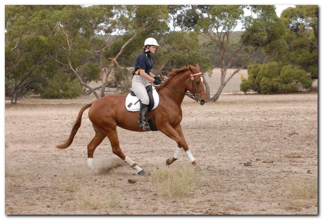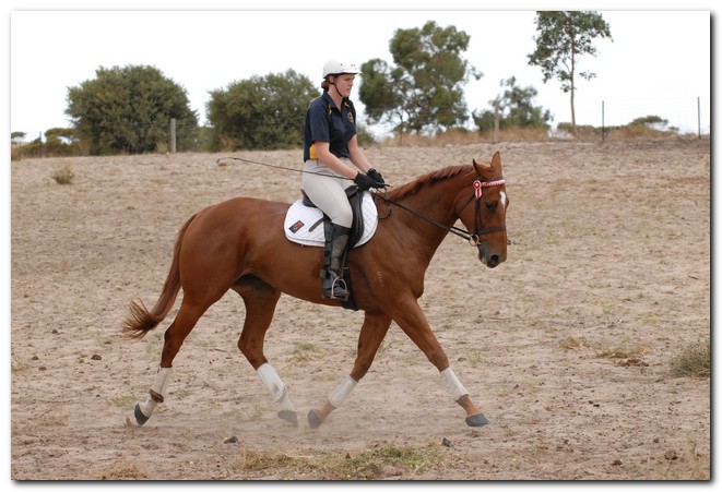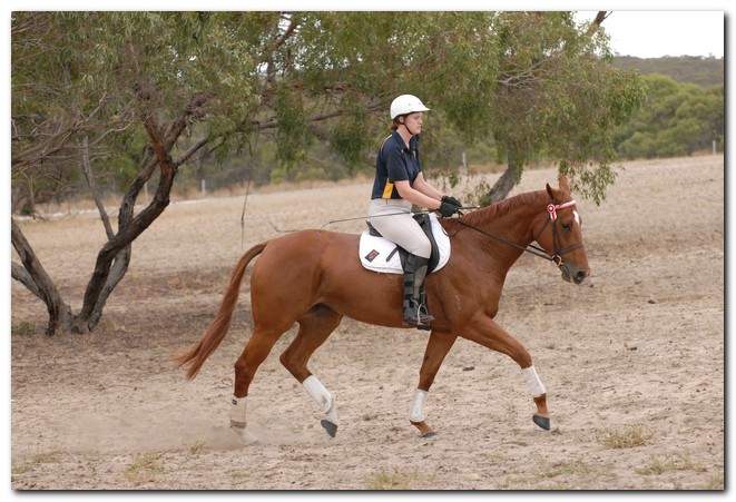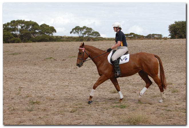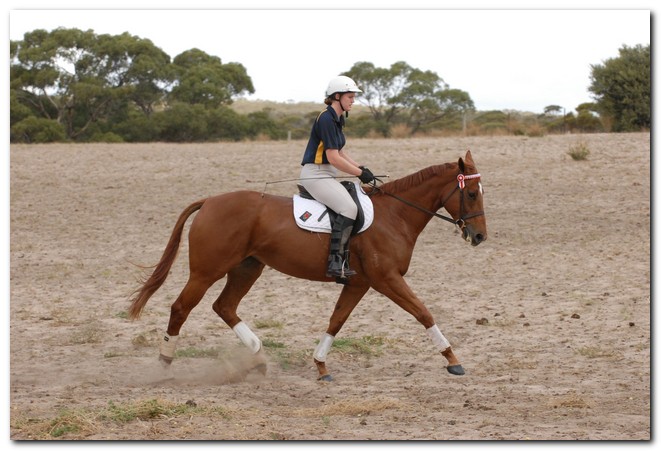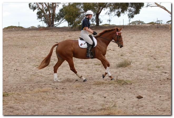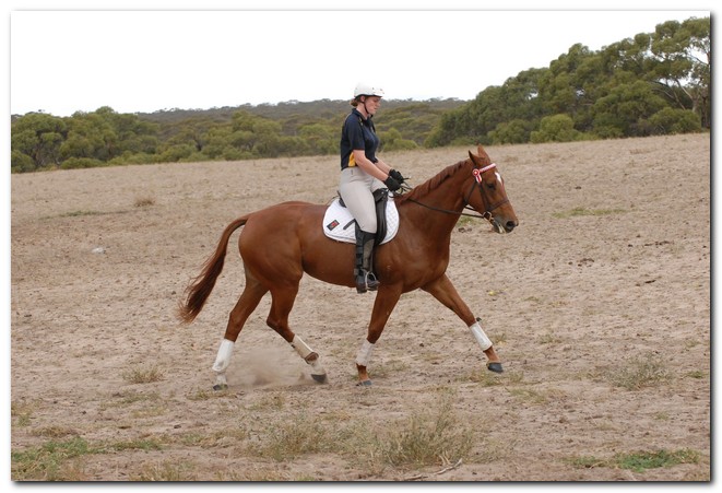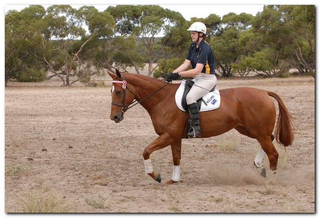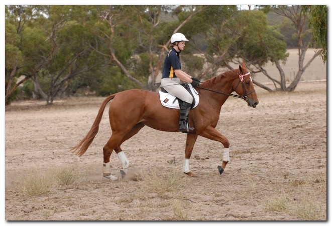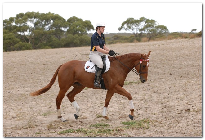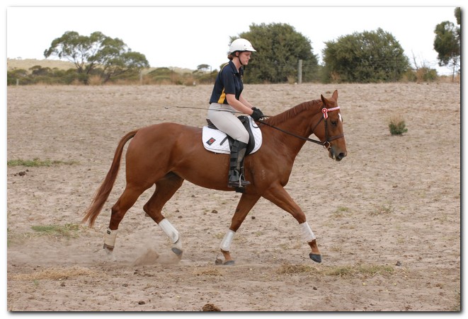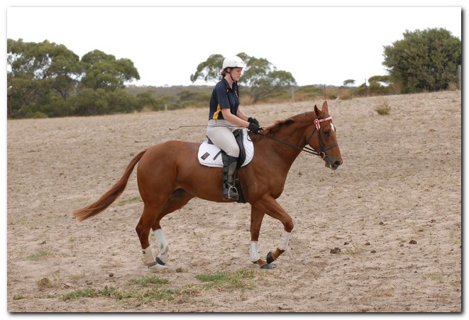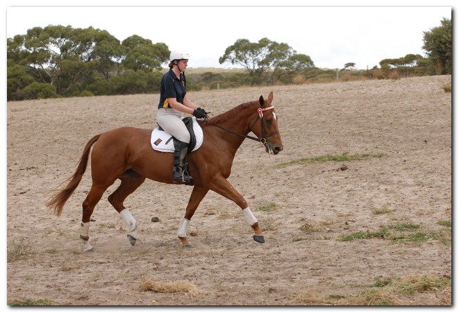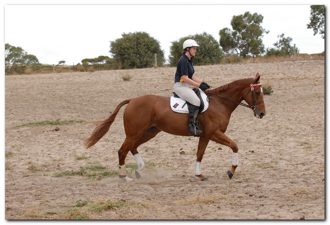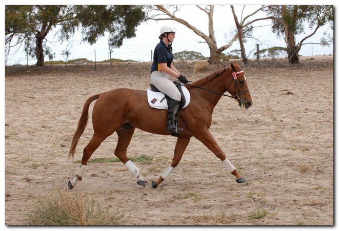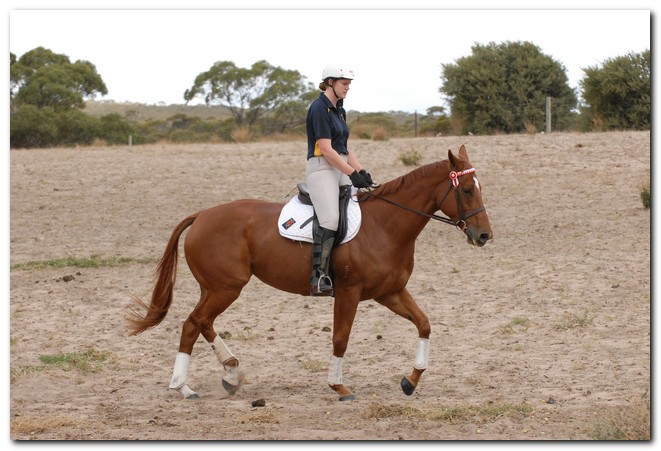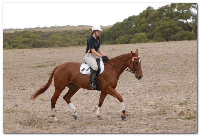 Unraced (not even barrier trialled), big framed, big muscled, quality mare. Brilliant Show Hunter Hack type and allrounder prospect for show, rider class, dressage and eventing/jumping (Sir Tristram bloodline). Big elevated movement with lovely extensions and a naturally slow canter. Comfortable to ride and kind natured. Good to ride out alone or in company. Champion Show Hunter at first show, August 2008. Winner of open hack classes and Show Hunter at Coonalpyn Ag Show Oct 2008.